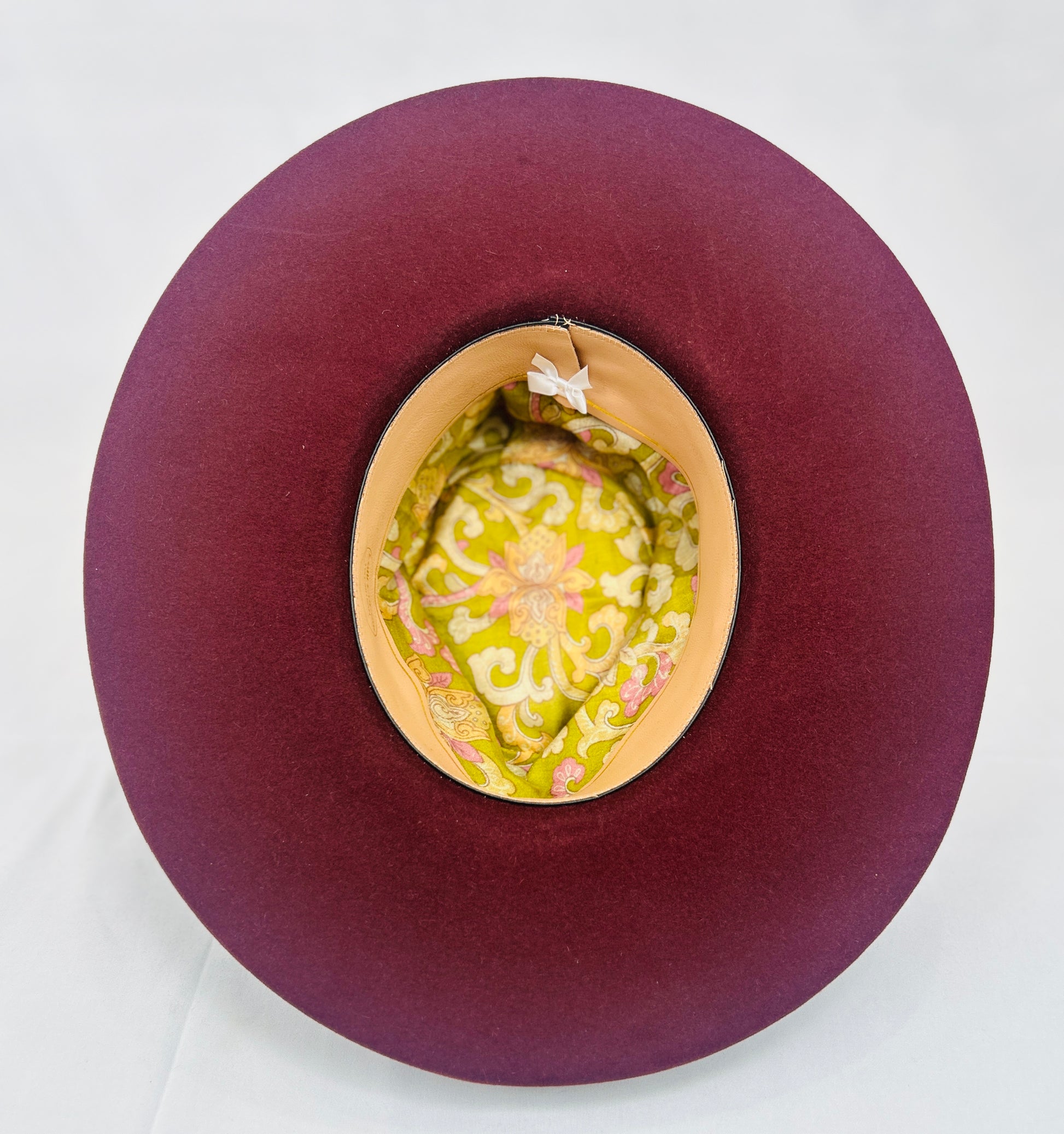 Vintage silk lining wth bow and lambskin sweatband.