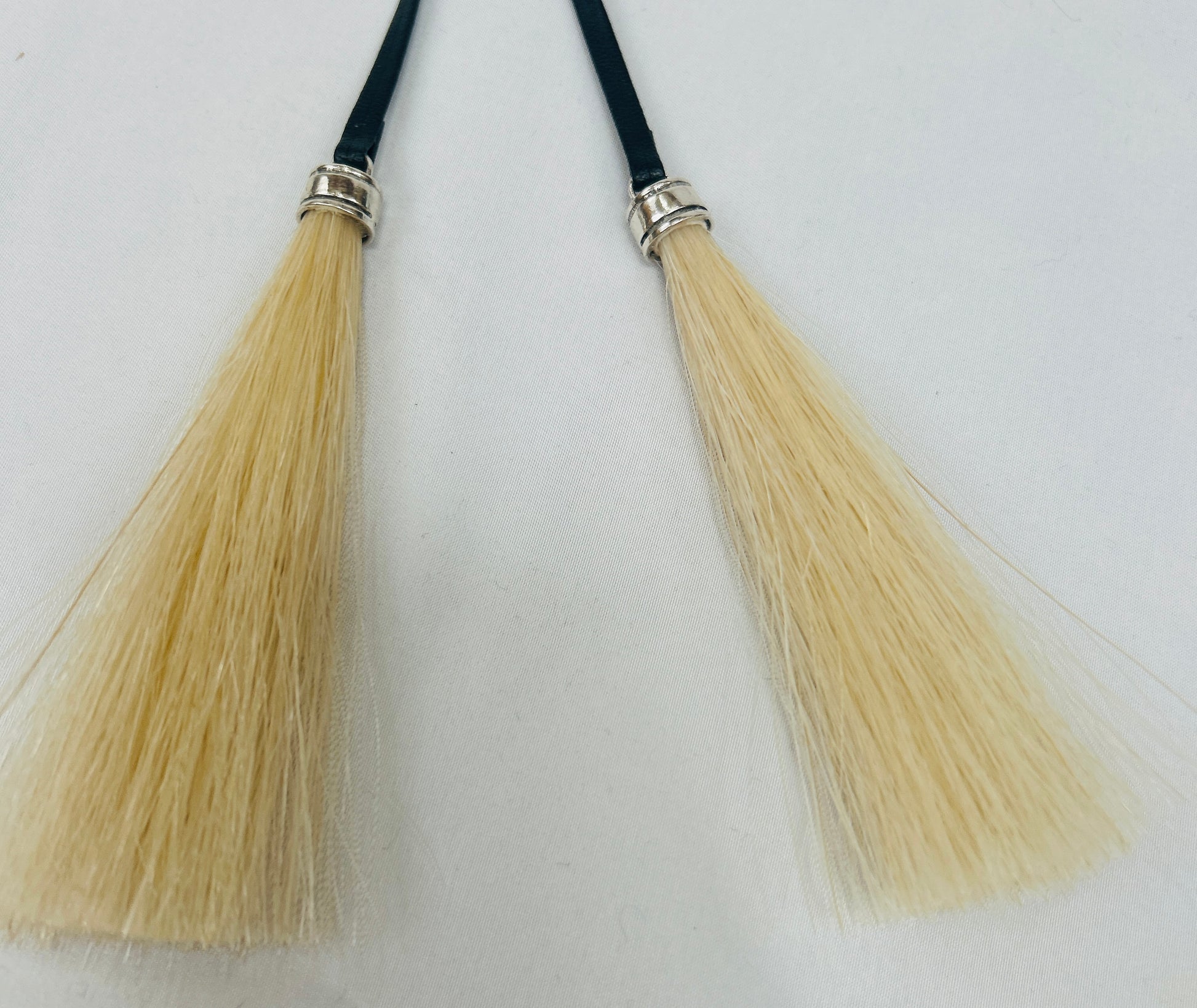 This striking Sterling Concho Bolo combines traditional craftsmanship with authentic materials. The centerpiece features a sterling silver concho paired with genuine horsehair filling, creating a distinctive focal point that captures the spirit of Western heritage. Flat black leather cording with sterling silver tips completes the design, offering both durability and refined elegance. Perfect for those who appreciate quality artisanal accessories with historical authenticity.